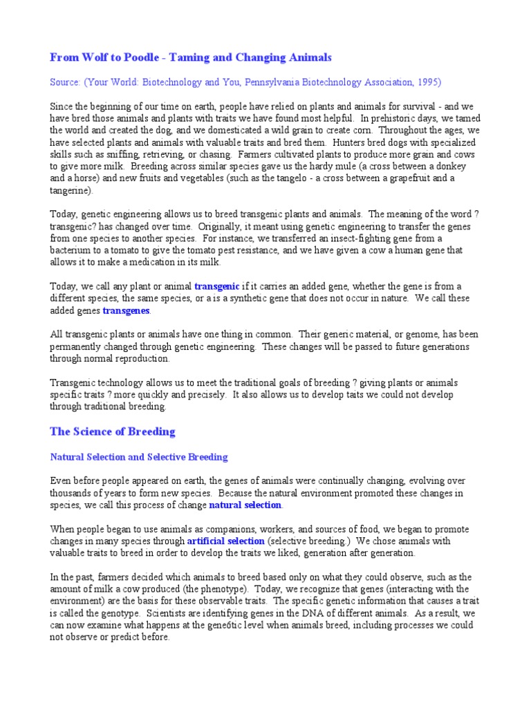 What Is Selective Breeding Lesson Three From Bringing Biotech To Life - The advantages of selective breeding can include improved quality and higher productivity for selective breeding may make animals better at specific tasks and may be used for decorative.